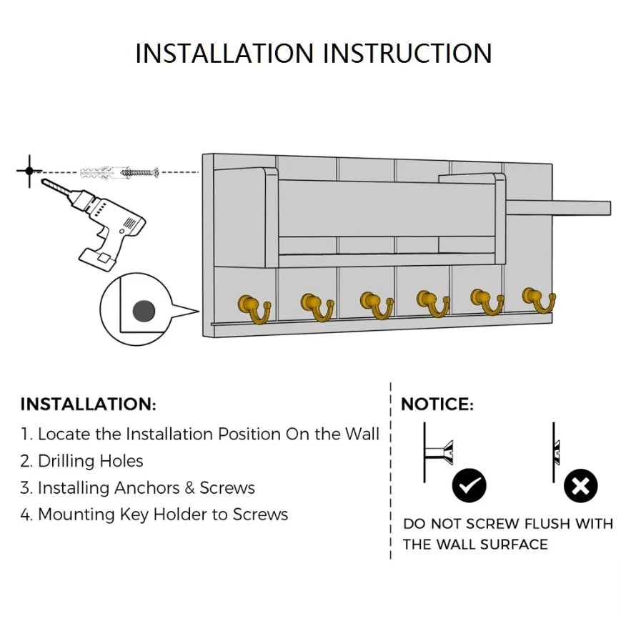Rustic wooden key holder with shelf - Organize with Style and Practicality